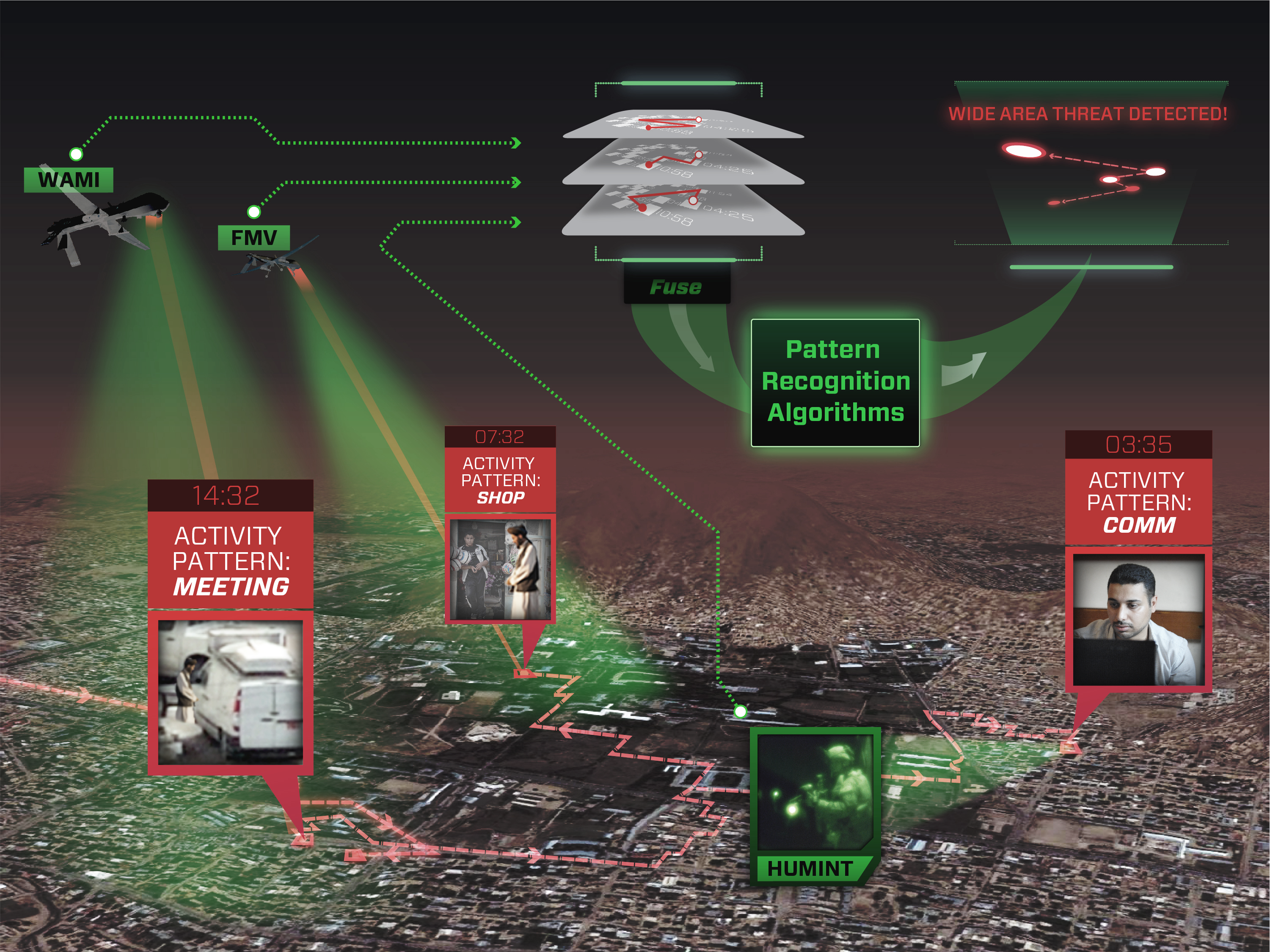 Everyday human behaviors form patterns–from mundane activities to adversarial tactics, techniques, and procedures (TTPs). But these patterns are often hidden from view in a vast canvas of irrelevant behaviors and terabytes of MULTI-INT data. To separate the innocent from the dangerous, the irrelevant from the relevant, Aptima has leveraged the technology and expertise originally developed under the FINAL Phase I SBIR contract awarded in May 2007 to develop its advanced Pattern Recognition Solutions line of products and services.